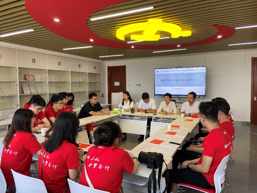 6月12日清晨,437ccm必赢国际版“明理拾光”2023届毕业生党员早茶会在翡翠科教楼B704举行,学院党委相关负责同志、本科生党支部委员与全体毕业生党员参加活动。
