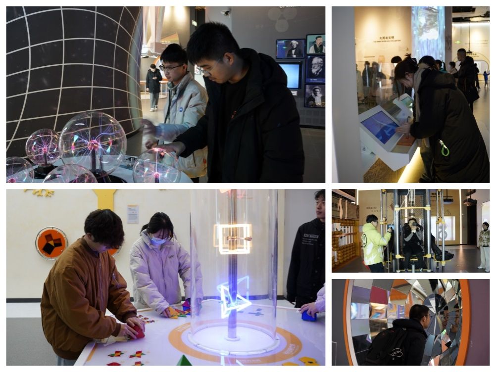在实践环节,学院党委副书记兼纪委书记陈大为带领全体师生来到安徽省科技馆,实地参观体验科普。安徽省科技馆新馆11月23日开始运行,共设置9个常设主题展厅、1个科学秀场、1个临时展厅,建有全国首个量子科技主题展厅、全国首个数字孪生科技馆。在这里,同学们结合自己课堂所学的专业知识,实地了解了力、热、光、电、声等基础物理现象的科普形式,体验了神奇瑰丽的量子物理世界。参观结束后,同学们分享了自己在科技馆里的见闻和对于科普工作的感悟,纷纷表示本次参观对自己来说受益匪浅,认识到只有实践才能更大激发人们对于科技的兴趣。
