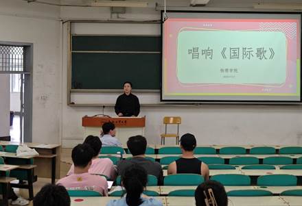 应用物理学本科生党支部副书记荣钊敏首先向同学们生动介绍了国际歌的起源、发展以及瞿秋白同志翻译时的深刻思考,阐述了国际歌作为一首具有丰富历史底蕴的歌曲,在国际共产主义运动中所承载的精神价值。