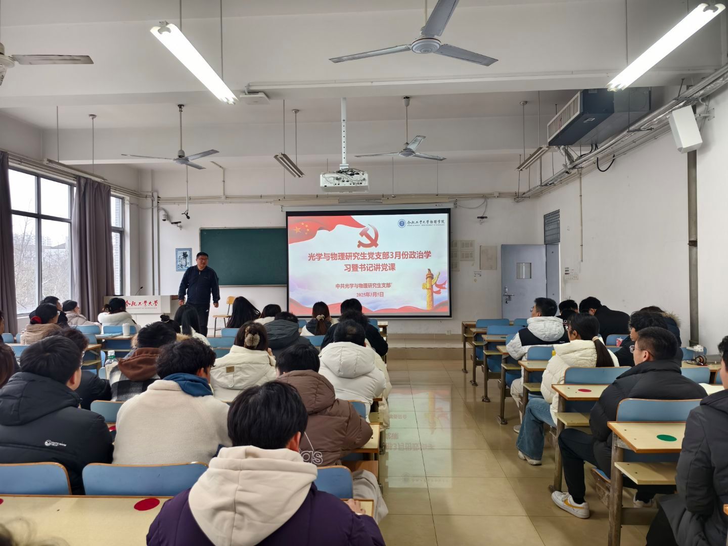 近日,光学与物理研究生党支部在12教104开展了一场以“巩固深化党纪学习教育成果”为主题的党课,学院党委书记兼纪委书记陈大为担任主讲人,支部全体党员参加学习。