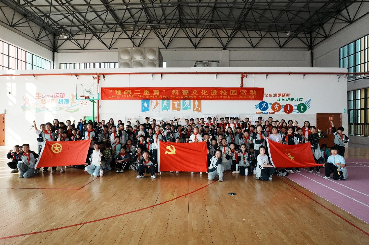 长幼同携手,党团队共筑。在这场科普活动中,党团队携手共同编织着知识与梦想的纽带。“理响二重奏”科普文化进校园活动共吸引了竹溪小学近300名小学生参与,安徽中医药大学人文与国际教育交流学院和437ccm必赢国际版近40名师生参与此次活动。本次活动引领青少年沉浸式体验与学习中华优秀传统文化,在感悟文化魅力的同时实现文化自信与科学素养双提升,并依托党团队组织协同育人优势,强化思想领航,精心培育时代新人。