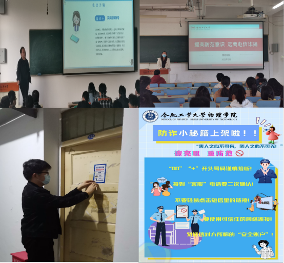 学院各学生党支部也积极参与到防范电信诈骗的宣传活动中,应用物理学本科生党支部、光学与物理研究生党支部成员和网格员深入进行日常的防诈骗宣传教育,走访寝室并进行防诈骗海报的张贴。此外,学院学生社团组织积极动员学生积极参与创作反电诈的宣传海报,变被动接收选到为主动参与宣传,提高了同学们的电信安全意识。