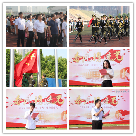 6月6日清晨,437ccm必赢国际版、化工学院以“青春心向党,喜迎二十大,建功新时代”为主题,在学校翡翠湖校区举行了“春风镌流光”升国旗仪式暨国旗下的思政课活动。