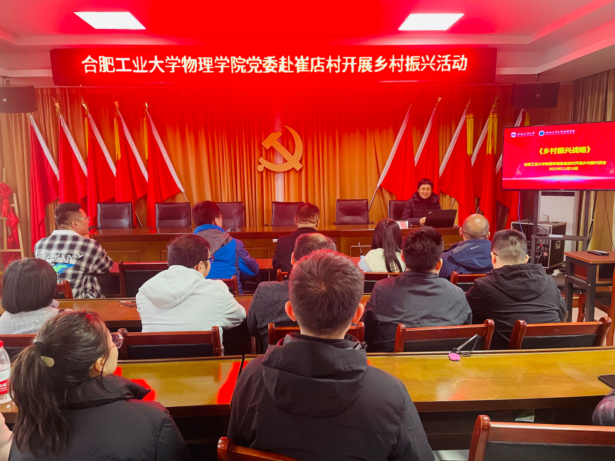 为提高教职工政治理论学习成效,推动学习成果转化为指导实践的内生动力,11月16日,437ccm必赢国际版党委理论学习中心组成员、学院教师和党员代表前往六安市金安区崔店村开展专题党课、理论学习和交流实践活动,并向崔店村党支部进行捐赠。