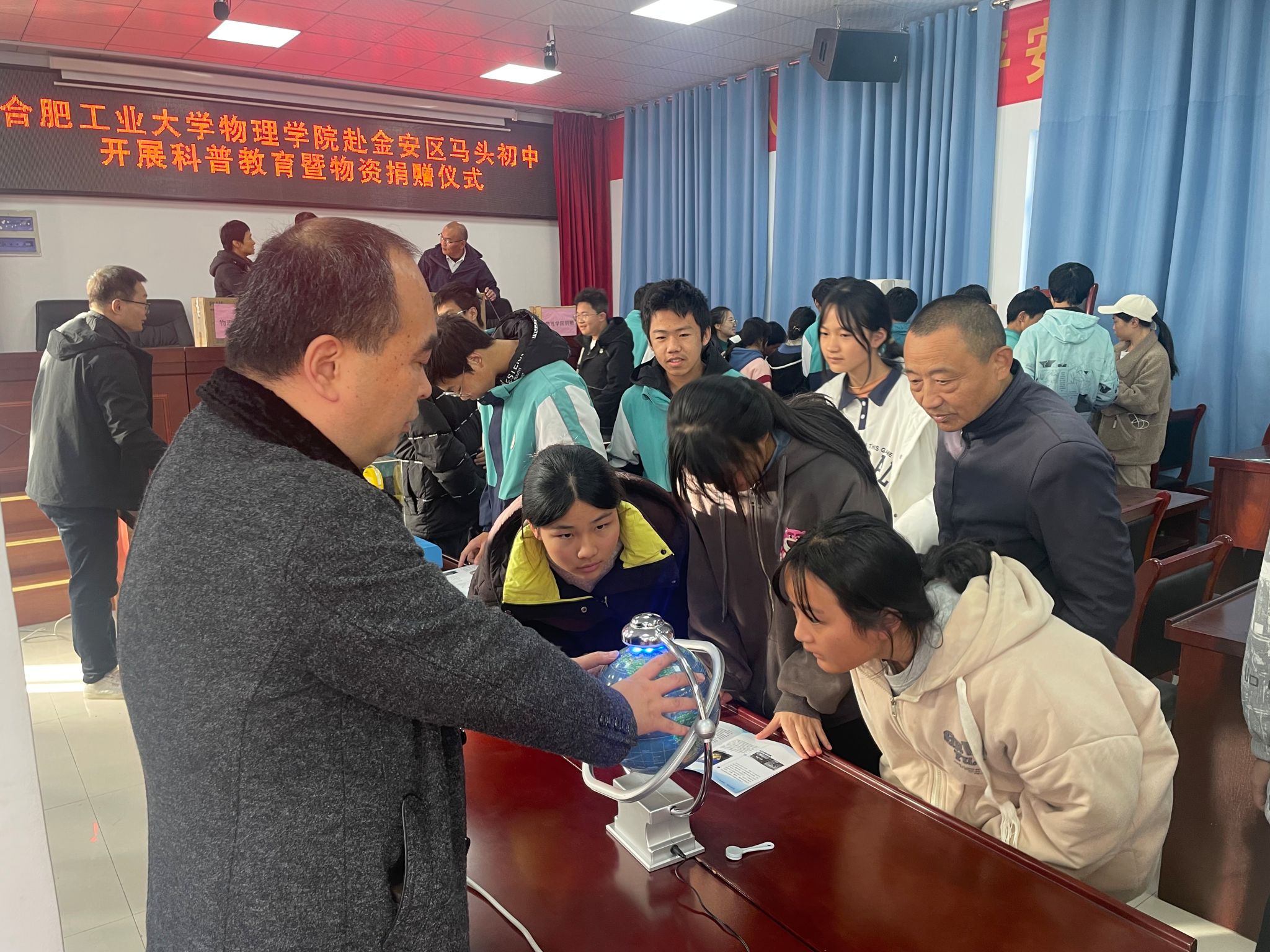 为进一步巩固拓展脱贫攻坚成果,全面推进乡村振兴,11月16日,437ccm必赢国际版党委和学院分工会前往六安市金安区组织开展“发挥学科优势,描绘振兴蓝图”主题实践活动,在马头镇初级中学和崔店村开展了科普宣传、物资捐赠、学习共建、消费帮扶等系列活动。