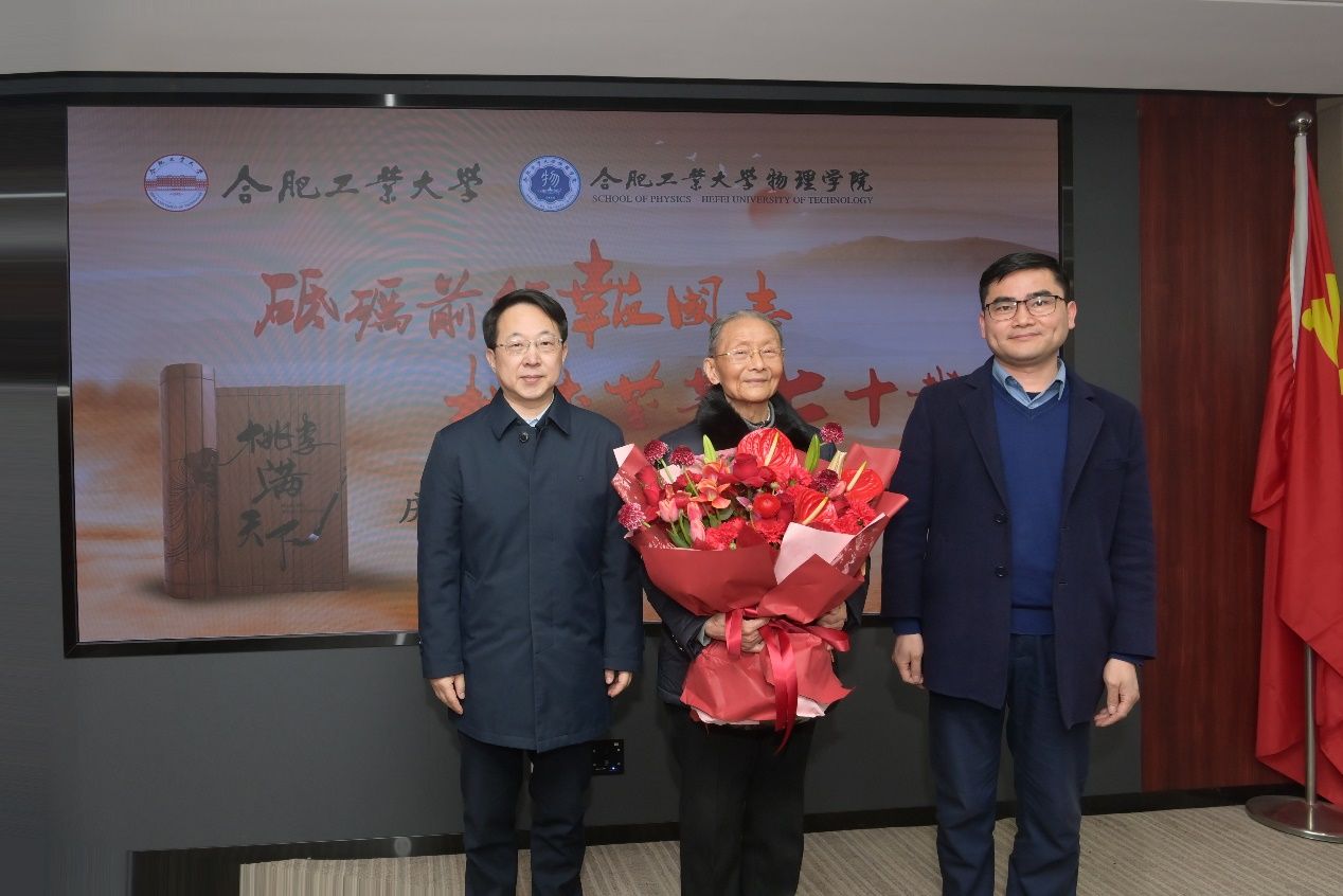 郑磊代表学校向鲍老致以美好的祝福,向在学校改革建设发展中潜心育人、默默奉献的全体离退休职工致以崇高的敬意。郑磊深情回顾了鲍老从教七十年来的风雨历程,他表示,学校今天取得的一系列成绩,离不开以鲍老为代表的一代又一代合工大人的接力传承和不懈奋斗。郑磊指出,明年即将迎来学校八十华诞,全校师生要传承老一辈合工大人的奋斗精神,凝心聚力推动学校各项事业再上新台阶。一要大力实施“人才强校”战略,持续提升教师队伍建设水平,推进高层次人才培育引进工作。二要瞄准关键核心技术和卡脖子难题,突出学科领域优势,大力加强需求引导型基础研究,引导科研工作向高水平、原创性发展。三要关心关爱广大离退休老同志,用心用情做好离退休工作,引导老同志们为学校各方面事业高质量内涵式发展发挥余热、多作贡献。