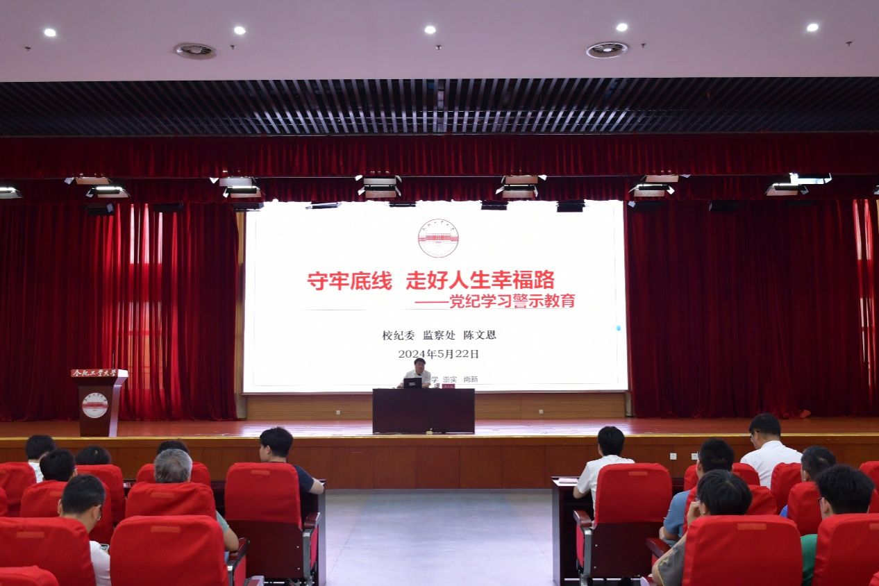 为进一步高标准高质量推进党纪学习教育,以良好作风保证党纪学习教育走深走实,5月22日437ccm必赢国际版在翡翠科教楼A座学术报告厅举行党纪学习教育专题辅导报告会。校纪委副书记、纪委办公室主任、监察处处长陈文恩应邀作了主题为《守牢底线 走好人生幸福路》的党纪学习警示教育专题报告。