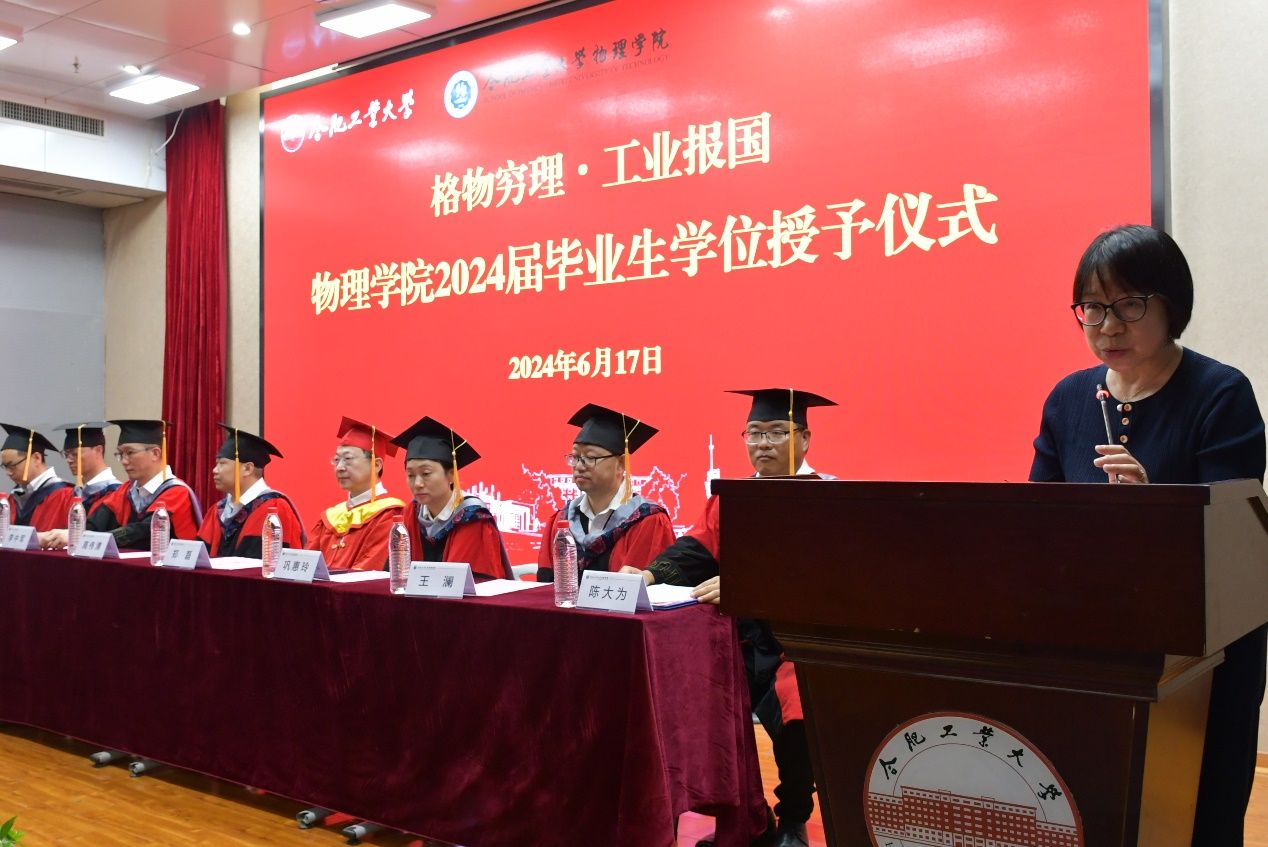 优秀校友代表、中科院安徽光机所党委书记谢品华为仪式致辞。谢品华回忆了自己的工大生活,勉励同学们“以学校为荣,用知识的火炬,点亮未来的道路”。教师代表、应用物理学2020级2班班主任黄松及安徽省优秀毕业生、bwin必赢线路检测校长奖获得者、学位获得者代表、应用物理学2020级2班荣钊敏同学分别在仪式上发言,表达了老师对毕业生的祝福和期盼、毕业生对母校的感恩之情。