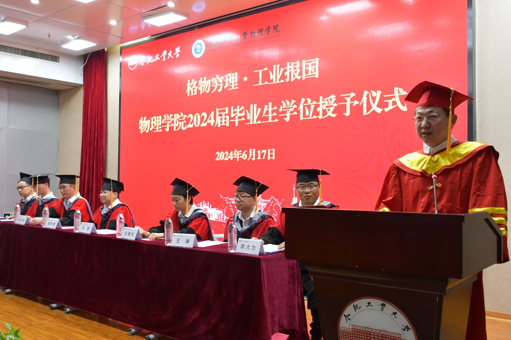 校长郑磊向全体学位获得者表示热烈祝贺,他在讲话中代表学校向学位获得者提出了殷切希望,并鼓励广大同学“多去读书,建立正确的世界观;善于思考,牢记‘明理’二字;珍惜时光,努力为梦想奋斗”,他最后表示“希望全体同学,珍视奋斗的时光,珍视交流的时光,珍视自己不断努力提升自己的时光。”