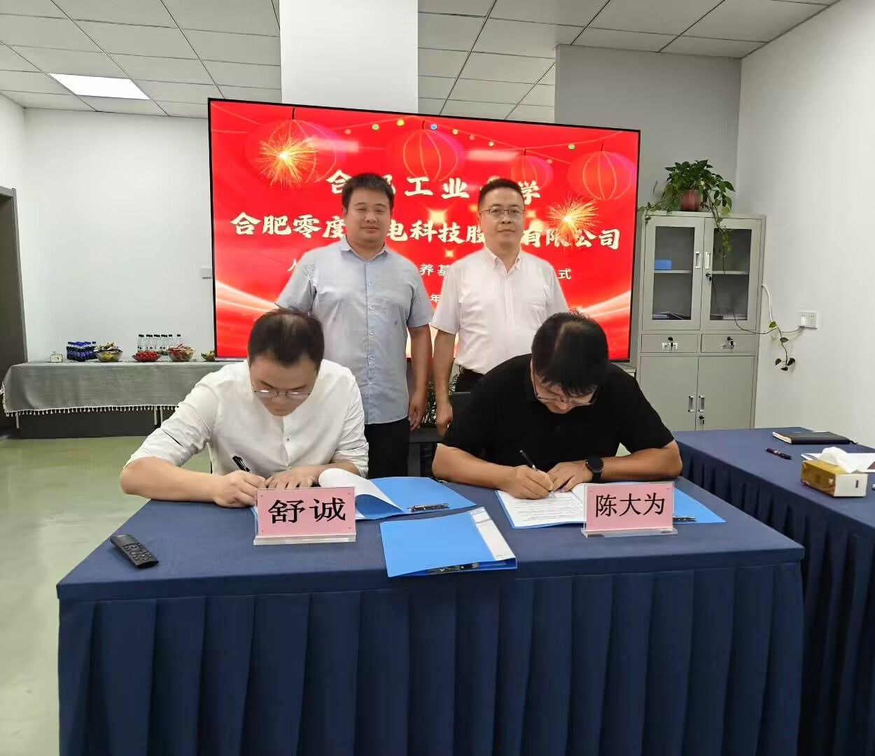 在双方代表见证下,零度光电市场部经理舒诚与437ccm必赢国际版党委副书记陈大为共同签署《bwin必赢线路检测就业实习基地协议》,崔健和汪晨共同为大学生就业实习基地揭牌。