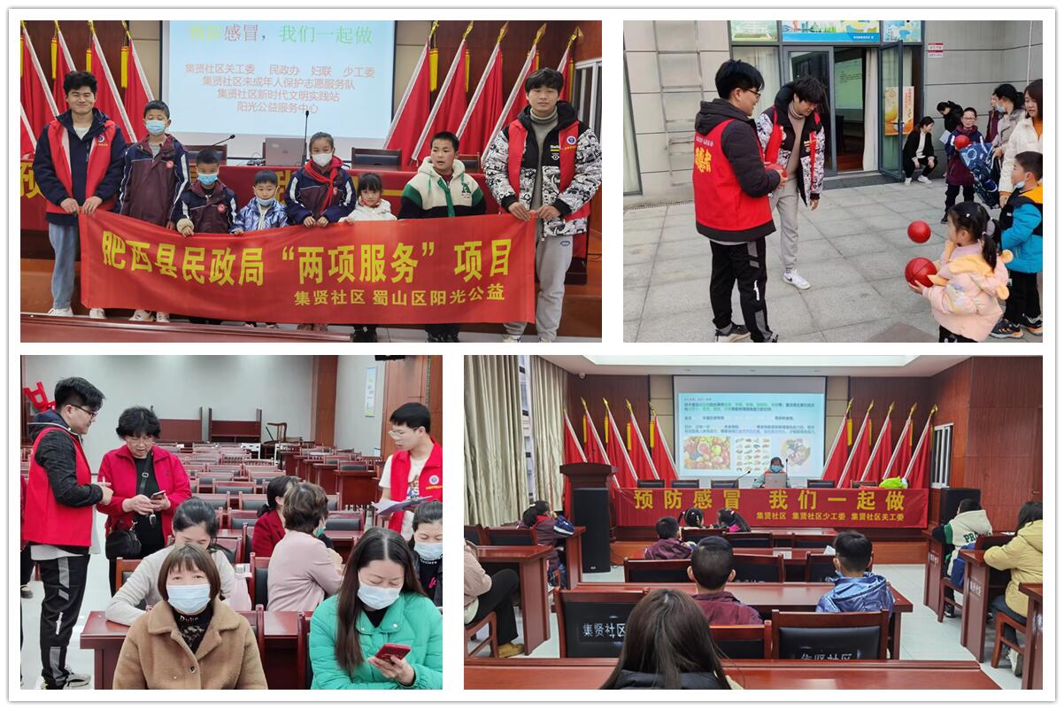 3月6日,志愿者们在集贤社区开展“安享夕阳生活”老年大学主题活动,为社区老人介绍春季疾病预防、健康养生等科学理念,助力老年人安享幸福晚年。3月1日,志愿者们在集贤社区开展了“运动中的安全” 社区少先队主题活动,围绕篮球运动向小朋友们介绍了如何在运动中保护自己、得到锻炼。2月28日,志愿者们在肥西县集贤社区开展了“预防流感,我们一起做”社区少先队主题活动,活动中向小朋友们系统介绍了春季易发流感的原因以及预防方式,特别向小朋友们强调了保护自身健康的重要意义。