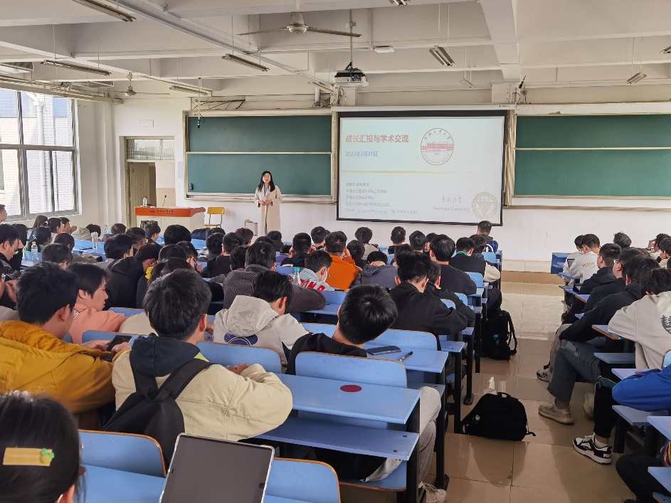 张璇如首先分享了自己的学术经历,结合应用物理学专业相关内容,对表面等离激元(光学频段)概念简单进行了介绍,展开介绍了其应用方向包括传感器、光开关、薄膜太阳能电池等,强调应用物理学专业在工业中的广泛应用。随后,张璇如结合自己的工作经历,与同学们探讨了选择与努力的关系,强调要明确自己的选择,然后朝着目标坚持不懈、努力奋斗。