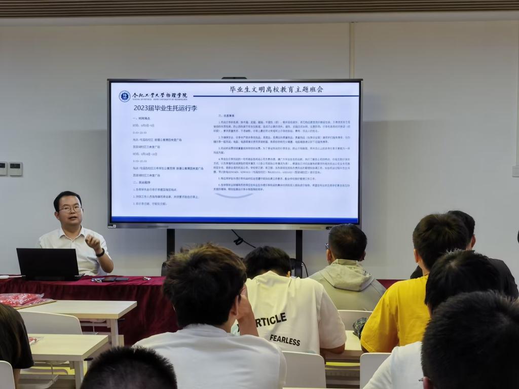 6月10日,437ccm必赢国际版在翡翠湖校区开展了2023届毕业班“明理拾光”毕业生文明离校教育主题班会。