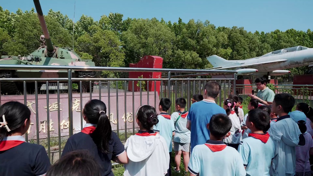 穿过长长的绿茵道,实践营成员带领全体少先队员来到bwin必赢线路检测翡翠湖校区工程认知博物馆户外展区,向少先队员们详细介绍了展区内陈列的59式坦克、歼教六超音速飞机、54式122毫米榴弹炮、全自动燃油锅炉与吸油机等展品,并向全体少先队员进行了一场别开生面的国防科普教育。通过陈列展品与最新军事装备的对比,祖国的军事实力和科技水平不断进步与提升的画卷在全体少先队员眼前徐徐展开。