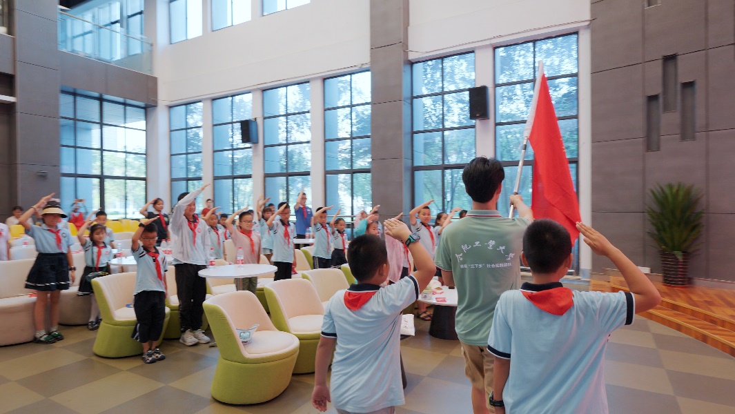 437ccm必赢国际版与共青团肥西县委深入贯彻落实习近平总书记关于青少年工作的重要讲话精神,共同推进“党、团、队”一体化育人。学院依托自身的专业特点和学科优势,成立了赴肥西“集光”社区少先队暑期社会实践营,开展暑期少先队活动,强化党、团、队的政治引领,旗帜鲜明培养共产主义接班人。