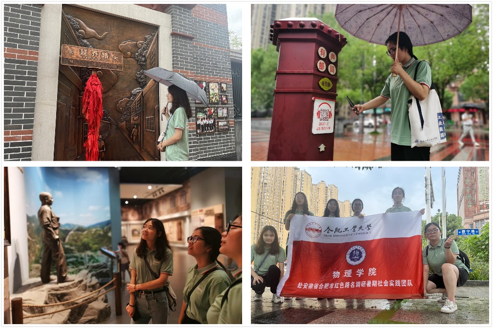 打卡名人道路——“街景为念,路石为碑”。实践团以道路名称为中心,选取其中几条具有代表性的道路,以延乔路为参考,探究合肥道路文化建设。实践团先后打卡如邓稼先路、振宁路、严凤英路等六条名人路,从南起将军岭东路,北至派和路的振宁路,北接繁华大道,南连汤口路的邓稼先路,到位于偏僻地带的严凤英路都有团队调研的足迹。实践团对交通实况,沿途建筑,居住状况等多方面实地观察发现:这些以安徽革命志士和英雄模范命名的道路具有浓烈的安徽地域特色,成为了合肥市道路城市设计的一大亮点。调研后实践团总结建议:借助这一亮点,践行“人民城市为人民”的重要理念,从文化出发,融入合肥历史,以功能落地进行城市微更新,加强道路文化建设。
