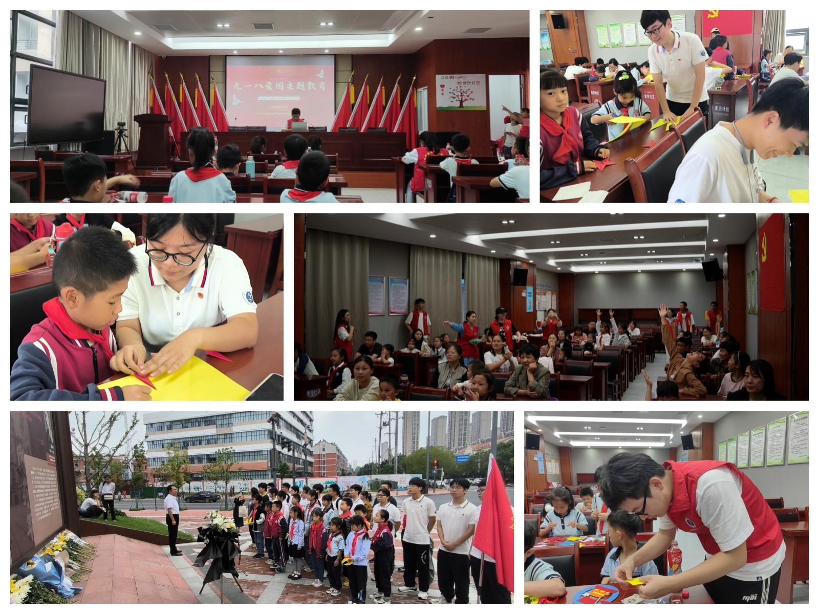 9月18日,志愿者们来到集贤社区活动中心,为社区的少先队员们上了一堂“九一八”爱国教育课。志愿者们介绍了“九一八”事变的前因后果、抗日历程和爱国英烈的事迹,让少先队员们更加熟悉中华民族反抗侵略的艰苦斗争历程和当今幸福生活的来之不易。9月26日,志愿者们在集贤社区开展了迎中秋活动,志愿者们介绍了中秋节的文化习俗,包括中秋的别称、嫦娥、玉兔、吴刚等等,之后与少先队员们共同吟诵了《水调歌头·明月几时有》,向少先队员们普及了中华优秀传统文化的相关知识。9月30日是第十个烈士纪念日,志愿者们来到集贤社区教授少先队员制作折纸“月亮船”,之后一起前往延乔路纪念碑,将做好的“月亮船”献给烈士,表达对烈士们的深深怀念。10月6日,志愿者们来到集贤社区开展“欢度国庆”爱国教育活动,向社区的少先队员们们讲述了国庆节的由来意义,介绍了国歌、国旗、国徽的知识,然后一起观看了爱国教育片。