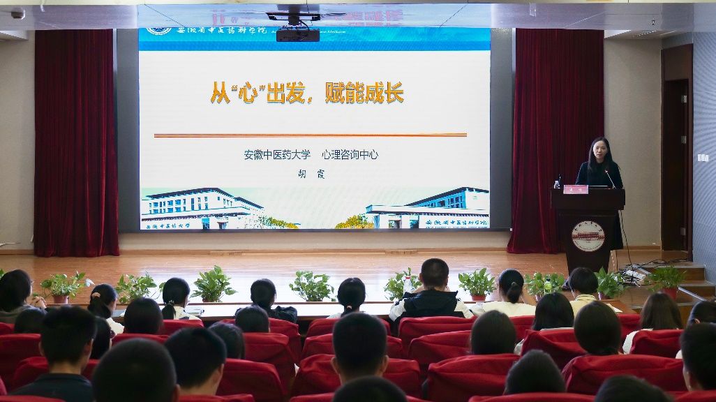 10月17日晚,437ccm必赢国际版、马克思主义学院在翡翠湖校区建艺馆负一楼报告厅举行了“和光”新生心理提升讲座,安徽中医药大学心理咨询中心主任胡霞应邀为两学院新生做题为“从‘心’出发,赋能成长”主题报告。