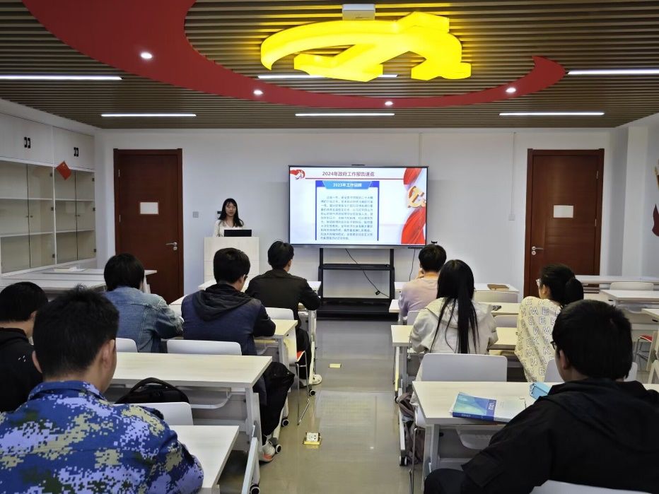 开课仪式结束后,辅导员陶候主讲了第一次团课。陶候从2024年政府工作报告引入,围绕2024年经济社会发展总体要求和政策取向进行重点讲解,结合学校学院的育人目标,勉励全体学员积极学习专业知识,努力成为创新型人才,勇立时代潮头,用敢于创新的精神体现青年风貌,用实实在在的行动践行自己的入团誓言。