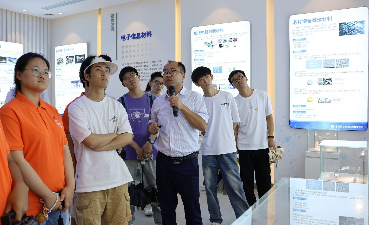 在强磁场科学中心,负责人向同学们介绍了研究所在大型磁场超导磁体技术的重大突破,并带领同学们参观了强磁场装置,就装置中的物理学原理与同学们进行了探讨。同学们纷纷为近三层楼高的装置所震撼,感叹我国科学技术发展之迅速。在固体物理研究所,同学们对固体物理所的发展历程、研究方向有的系统的认识,并了解到葛庭燧院士对中国科学院固体物理所的发展作出的卓越贡献,其主要成就是高精度自动化“葛氏扭摆”的研制。