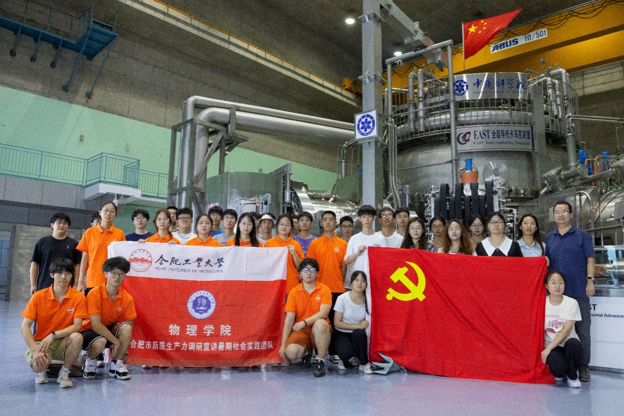来到等离子体物理研究所,同学们被眼前的“大国重器”全超导托卡马克EAST深深震撼。在实验室负责人的带领下,同学们来到“小太阳”托卡马克EAST装置旁近距离的进行了观察学习,负责人就党和国家领导人对全超导托卡马克EAST的高度重视及其发展历史作了详细介绍,并表明了对物理专业的学子的欢迎,希望同学们未来能够积极踊跃地加入等离子所的研究团队。最后,同学们在讲解员的带领下参观了聚变园区的EAST科技展馆。