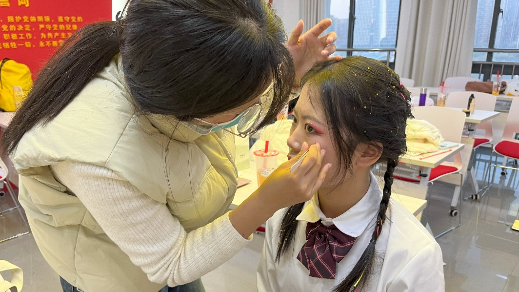 此次演出的顺利谢幕,同样离不开志愿者同学们的后勤工作。演出前的下午,叶念鑫等同学不辞辛苦,为参与演出的同学们整理仪容、搬运道具,力求将参演同学们最好的状态呈现给舞台。