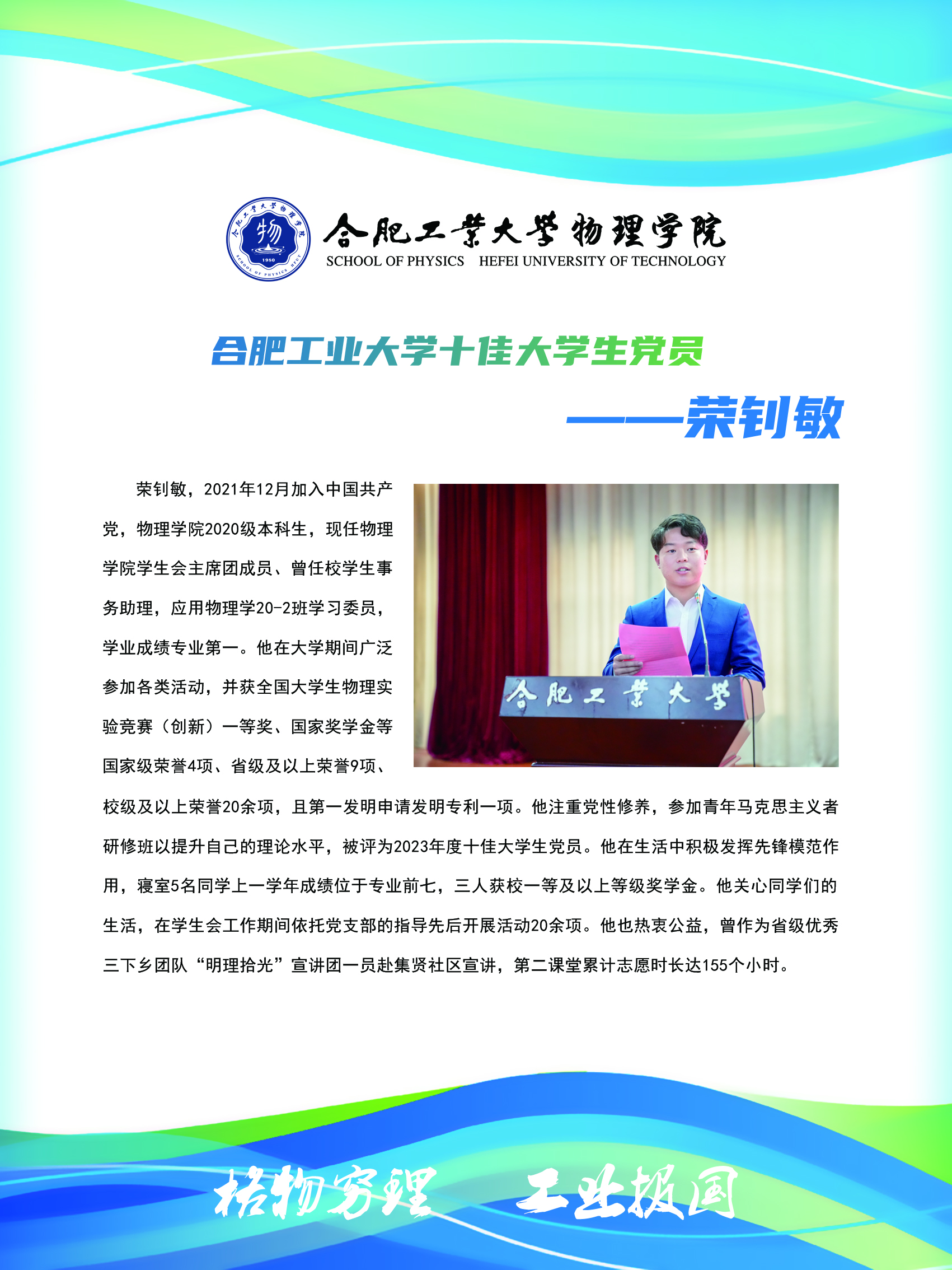 bwin必赢线路检测十佳大学生党员——荣钊敏