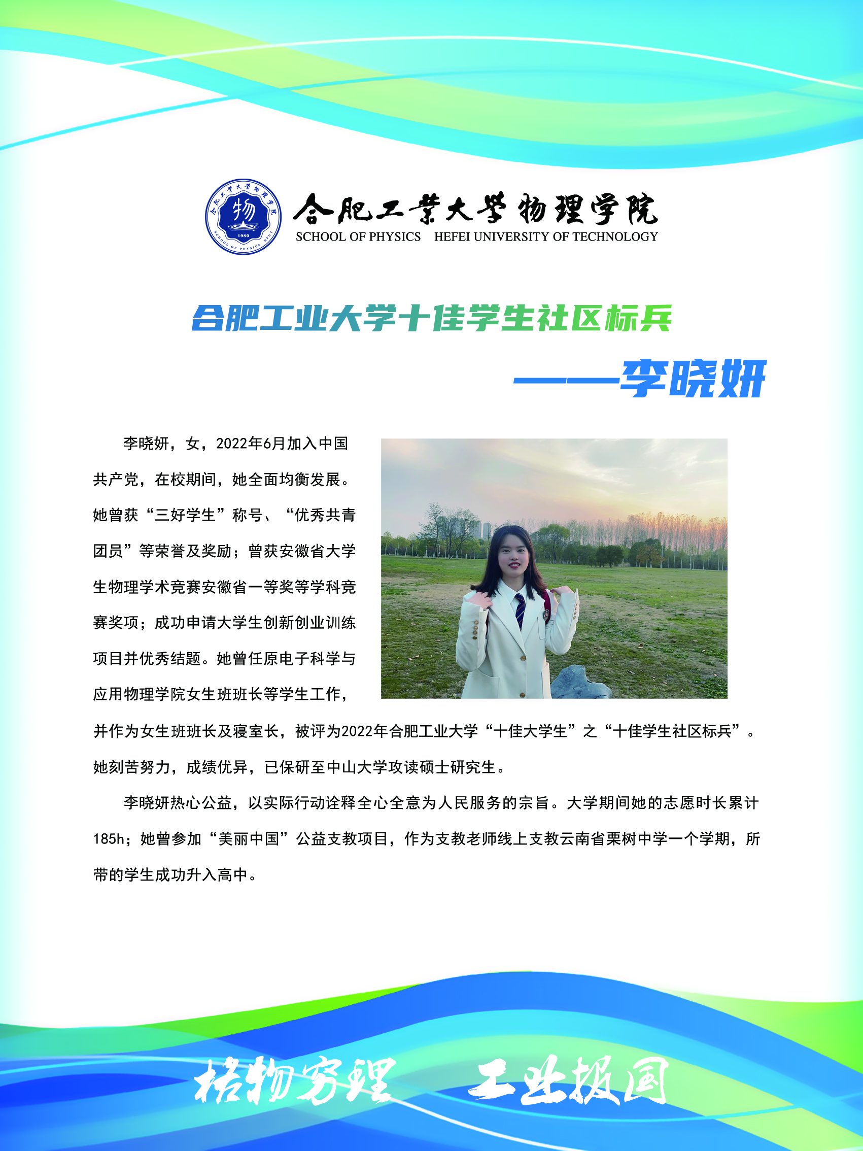 bwin必赢线路检测十佳学生社区标兵——李晓妍