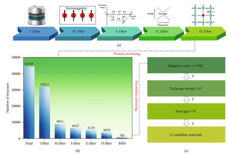 该成果以“High-Throughput Computational Screening for Bipolar Magnetic Semiconductors”为题,于2022年3月15日发表在《Research》期刊上。《Research》是中国科协与美国科学促进会于2018年共同创办的定位为国际化、高影响力、综合性科技期刊,是美国《Science》杂志自1880年创刊以来第一本合作期刊。文章第一单位为bwin必赢线路检测,第一作者为物理系汪海迪副研究员,通讯作者为中国科学技术大学杨金龙院士和李星星副教授。
