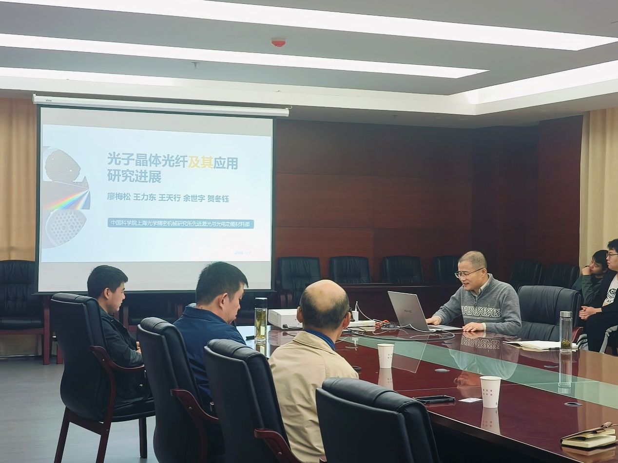秦冠仕教授以“新型氟碲酸盐玻璃光纤及其应用”为题,介绍了在氟碲酸盐玻璃光纤设计与制备、高功率中红外超连续相干光源、电调控可饱和吸收体与锁模激光等方面的研究工作。程同蕾教授以“面向空分复用的多芯/少模光纤及其复用器”为题,介绍了多芯/少模光纤的基本特性、制备加工以及相关的光纤器件在空分复用光通信领域的研究进展。廖梅松教授以“光子晶体光纤及其应用研究进展”为题,介绍了面向先进激光与惯性导航的需求,开展具有不同非线性特征的光子晶体研究及其在光纤超连续谱技术与激光陀螺中的应用。