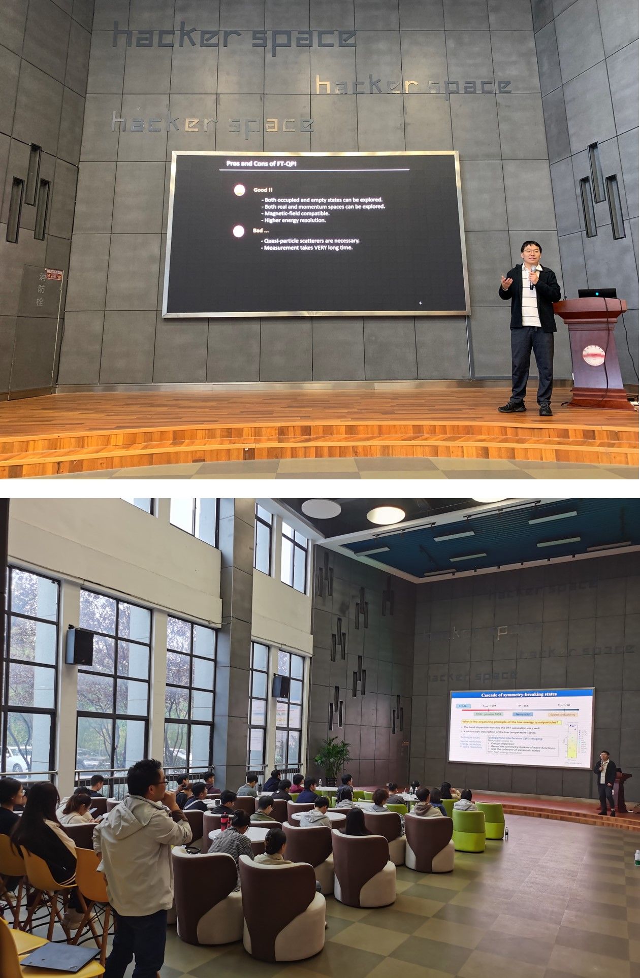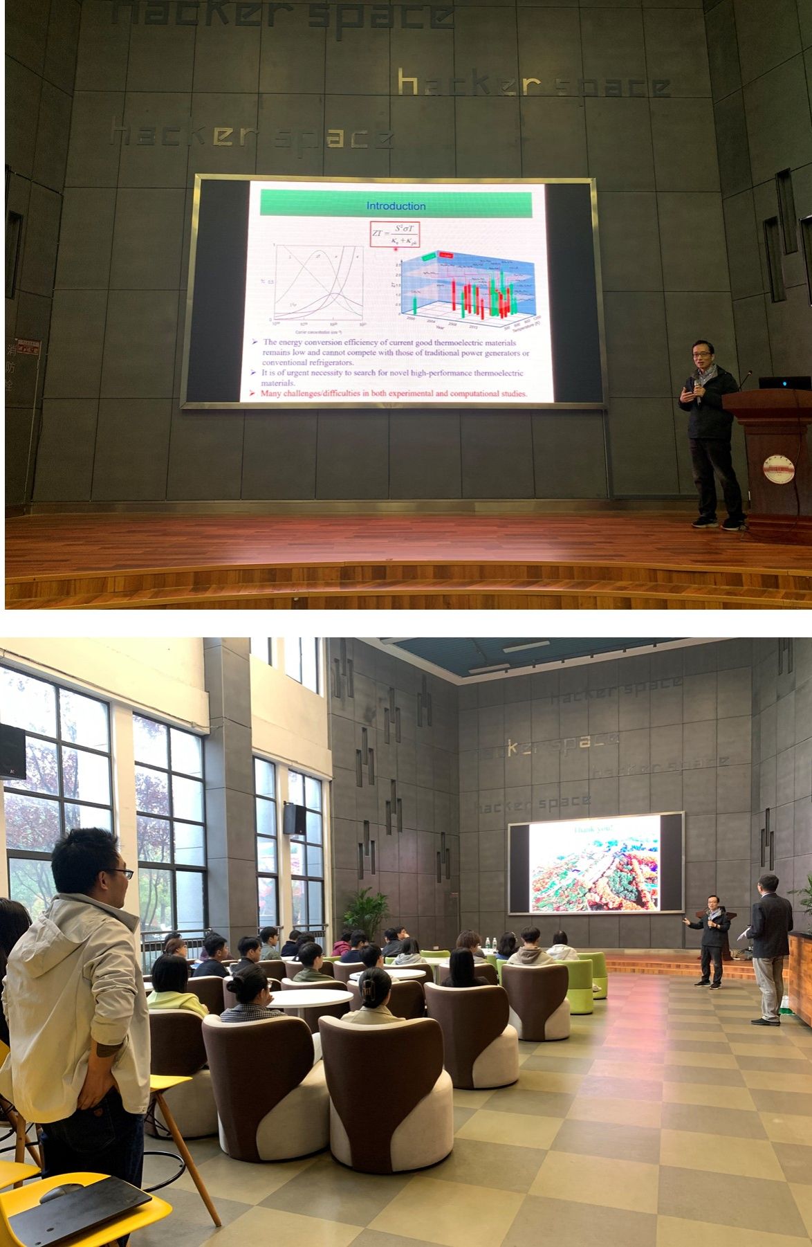 11月15日上午,437ccm必赢国际版在翡翠科教楼B座大数据中心报告厅举办学术报告会,武汉大学刘惠军教授和中国科学技术大学王震宇教授受邀分别做了“人工智能助力高性能热电材料的高通量筛选”和“笼目超导体中超导序参量与竞争电子序的谱学研究进展”的学术报告,437ccm必赢国际版副院长李中军教授主持报告会。