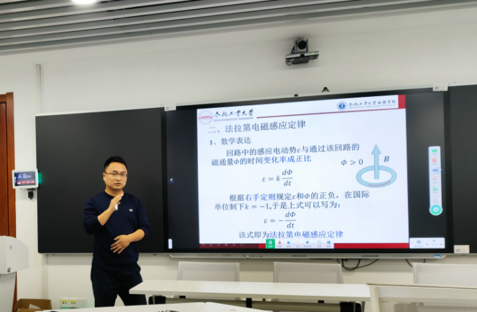 试讲活动采用“20分钟讲课+10分钟专家点评互动”的形式进行。三位参赛老师的试讲分别围绕《大学物理》课程中的电磁感应、驻波和光栅衍射三个主题展开。试讲结束后,各位评委从教学设计、课程思政引入、肢体和语言表达以及课堂互动效果等方面与三位参赛老师进行了深入的探讨和交流。评委们在肯定三位老师讲课过程中表现出的亮点和优点的同时,也给出了有针对性的建设性的意见和建议。
